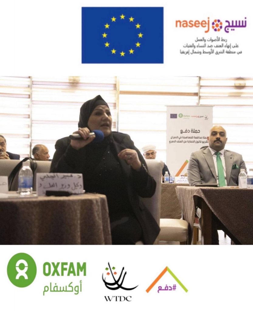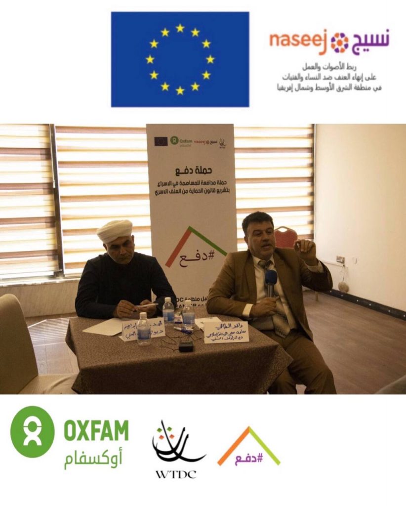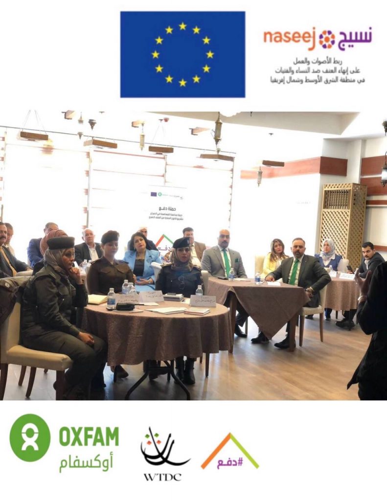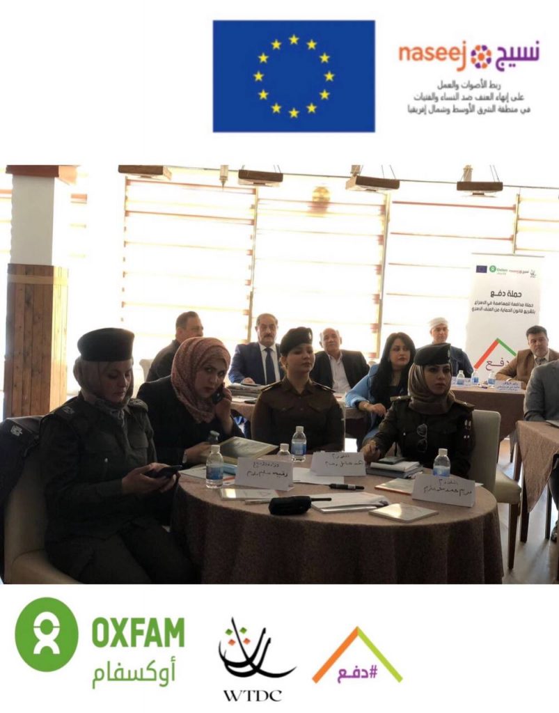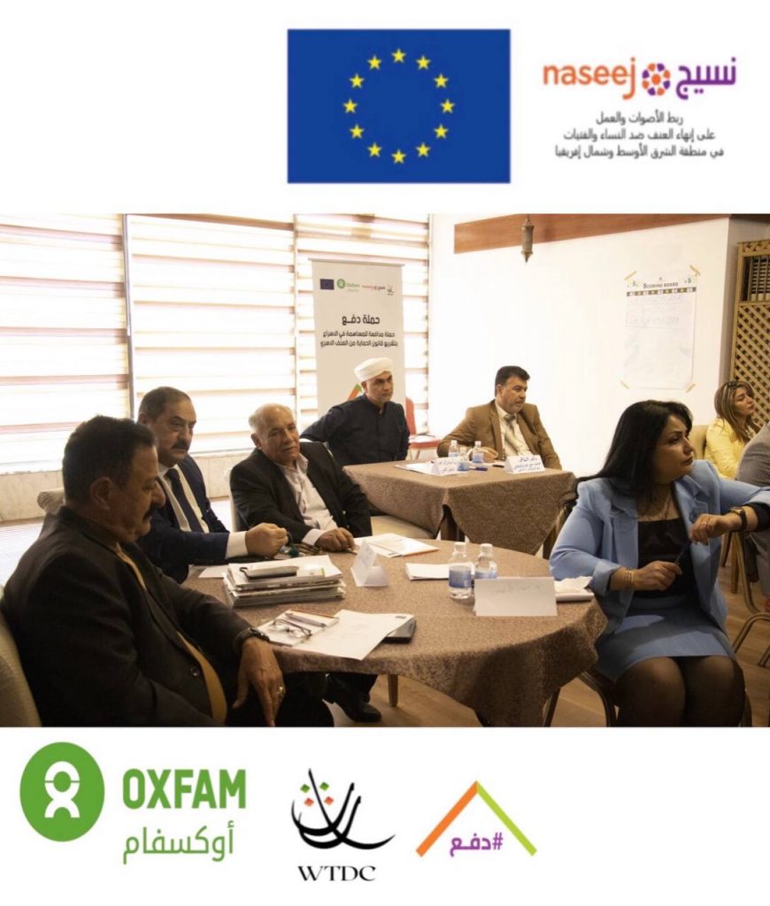 بتاريخ ٢٤/٣/٢٠٢٢ واستمرارآ للضغط على اصحاب القرار وتحشيد المجتمع للأسراع بعملية تشريع قانون الحماية من العنف الاسري في العراق ، نفذت منظمة WTDC وبالتعاون مع OXFAM وضمن مشروع نسيج المنتدى الحواري السادس لمشروع ( تسريع تشريع قانون الحماية من العنف الأسري في العراق ) لمناقشة مسودة ورقة السياسات المعدة بناءا على البحث التشاركي المستخلص من المنتديات الحوارية لاصحاب القرار وتقارير الرصد لحالات العنف الاسري في ١٠ محافظات عراقية.ناقش ورقة السياسات الحاضرين:- نواب برلمان للدورة الحالية-رؤوساء اقسام تمكين المرأة في الوزارات ( التربية، وزارة الصحة، وزارة العمل والشؤون الأجتماعية و وزارة التخطيط )- وزارة الداخلية الشرطة المجتمعية- قسم تمكين المرأة لوزارة الدفاع- قسم تمكين المرأة لجهاز الامن الوطني- رابطة عشائر العراق- ممثلين عن المؤسسات الدينية- رجال دين- شيوخ عشائر- شبكة الأعلام العراقي اهم مخرجات المنتدى-تبني النائب المستقل( علي السعدي ) لورقة سياسات دفع والتي تهدف الى تسريع تشريع القانون- ترويج النائبة نيسان لضرورة الاسراع بتشريع قانون الحماية من العنف الاسري- تبني اقسام تمكين المرأة لورقة السياسات وادراج توصيتها في تقاريرهم المقدمة الى دائرة تمكين المرأة في الامانة العامة لمجلس الوزراء- تبني الاوقاف الدينية للتوعية ببنود المسودات المقترحة لحماية الاسرة من العنف الاسري- عمل رابطة شيوخ العشائر على توعية المجتمع بمخاطر العنف على التماسك الاسري.